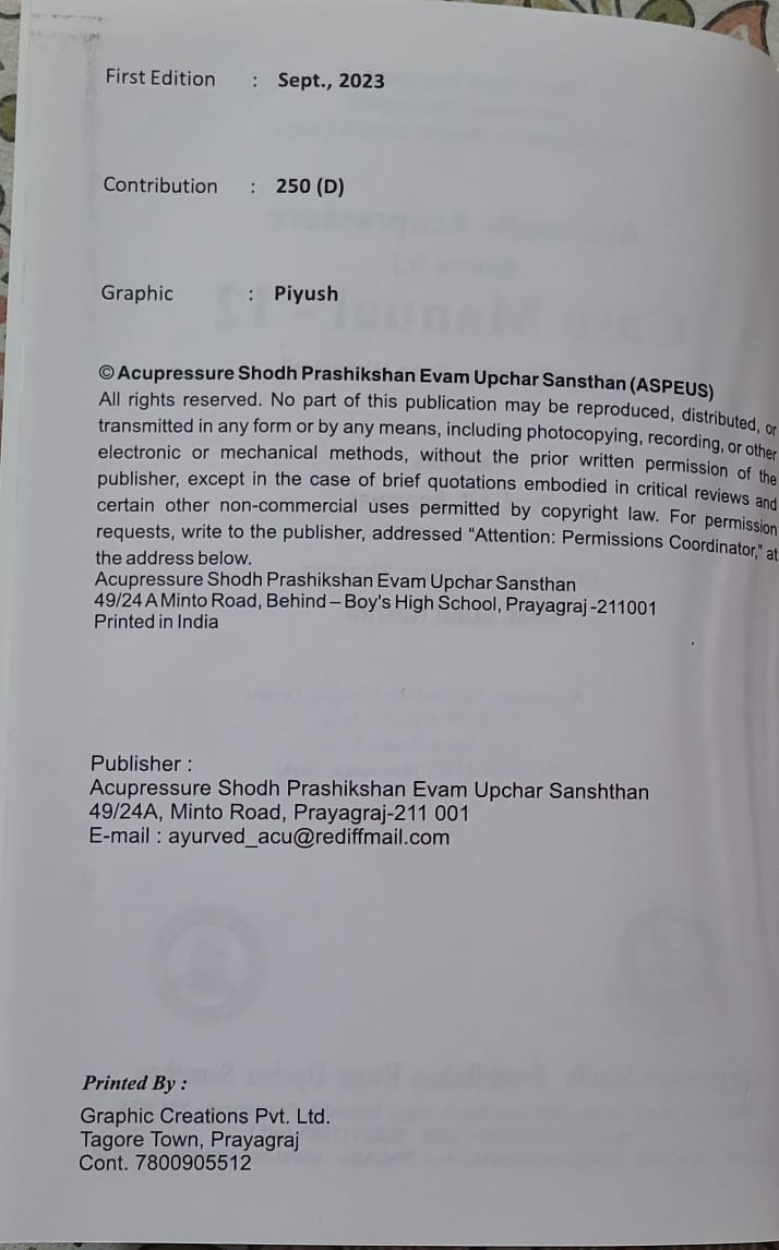 ₹250Research based case manual based on Ayurvedic Acupressure is available in this book.