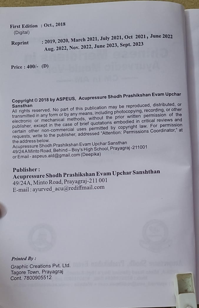 ₹250Research based case manual based on Ayurvedic Acupressure is available in this book.